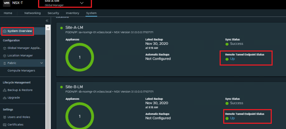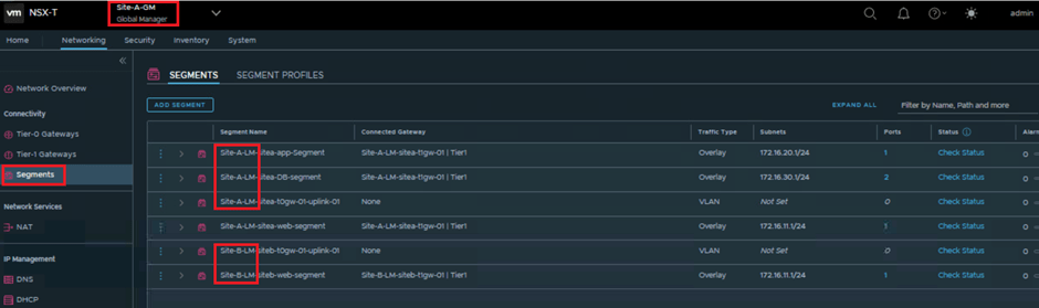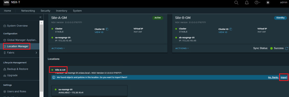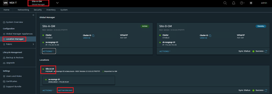 1. On the Site-A-GM Global Manager NSX UI, navigate to