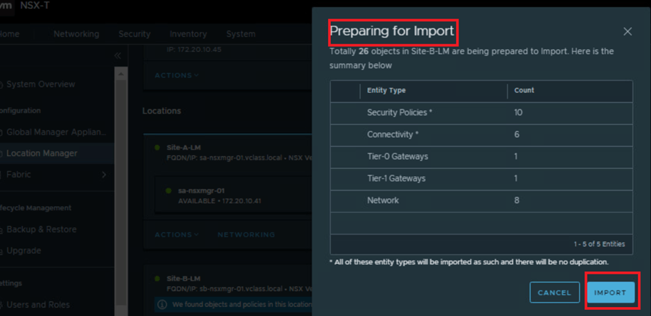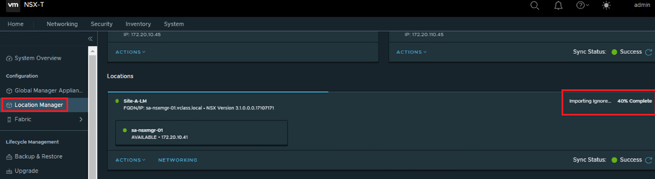 Importing the NSX objects to Global Manager can take approximately 10 minutes to complete.