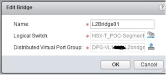 - Logical switch & DPG (physical VLAN used for L2Bridge) should be part of same virtual distributed switch, vDS.