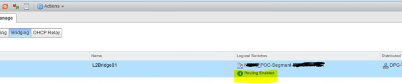 Once you publish your changes & bridging is enabled, logical-switch will reflect “Routing Enabled” option, as shown in figure.