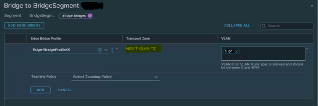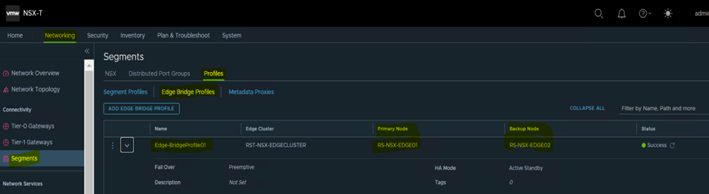 - Edit & expend additional setting and add edge bridge profile to this segment, shown in the diagram.
