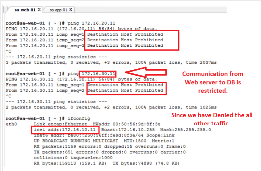 - By default all the communication among them is allowed, like “Web can directly reach db and vice- versa” we will confirm the same via few Ping & other tests during Prechecks.