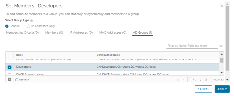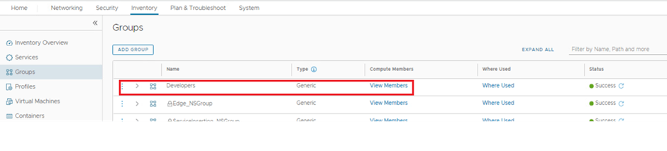 • Lets create a user group in NSX inventory named developers which already exists under AD we integrated.