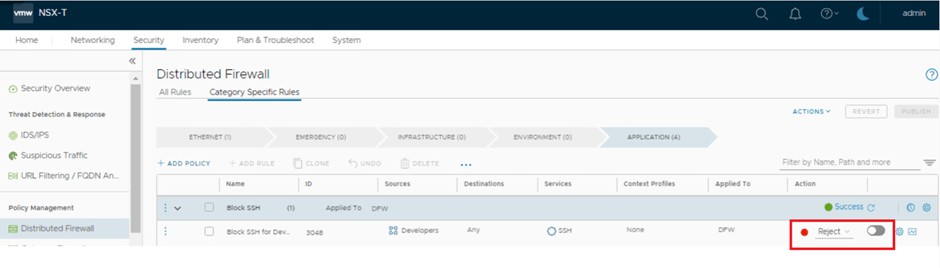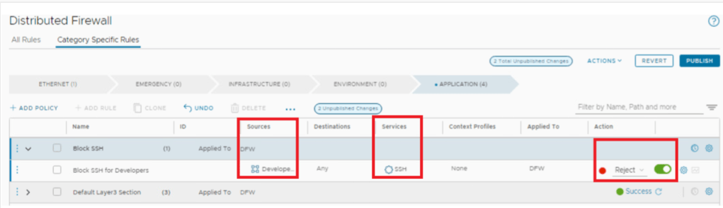• Rule Definition : If Any user part of Developers AD group access any destination on TCP 22 / SSH , it will be rejected.