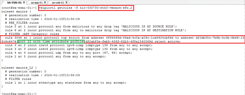 - VALIDATE THE TIME-BASED DISTRIBUTED FIREWALL RULES FROM THE CLI