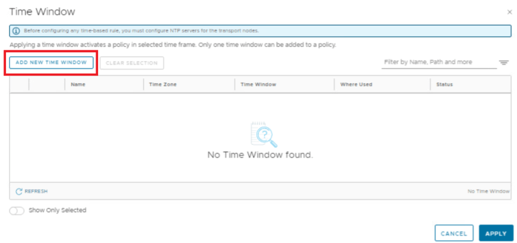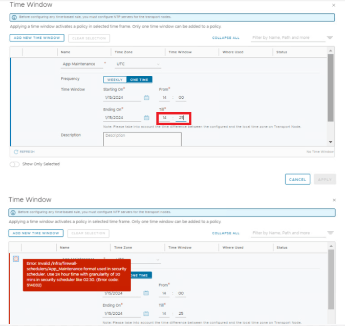 - Time-window can be applied to DFW as well as Gateway firewall.