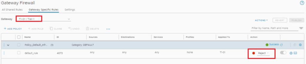 - With below traceroute we can see packet is dropped by firewall rule id – 4073 , which is at Tier-1 gateway.