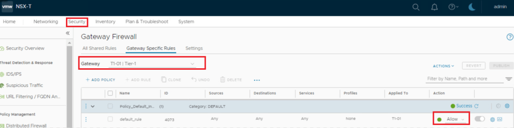 It is important to note that Gateway firewall is applied / enforced on uplink of the Tier-0 & Tier-1, so gateway firewall rules are applicable only if gateway uplink comes in traffic path.