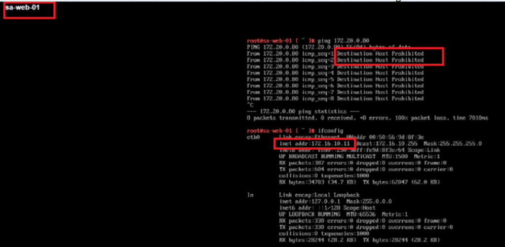 - Able to reach/ping northbound IP172.20.10.80 from sa-web-01