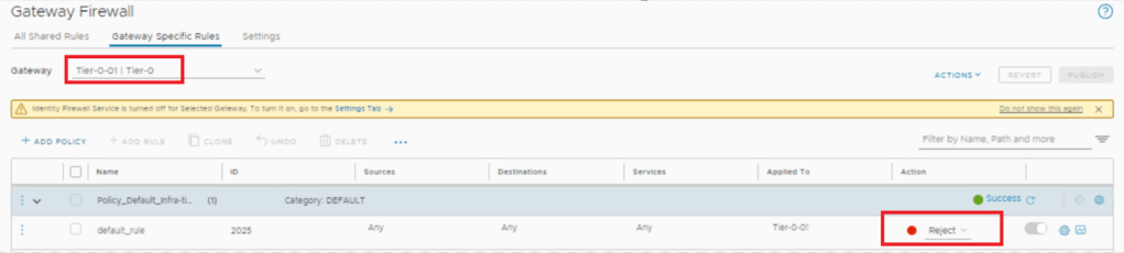 Keeping all the Default – Reject rule at Tier-1 & Tier-0 gateway firewall, lets validate communication shown in above topology.