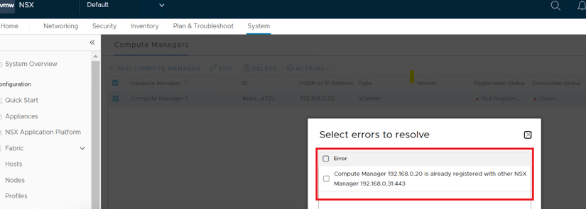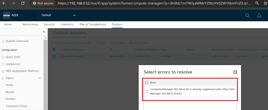 Problem Statement – While adding compute manager to NSX-T Manager it errored out “compute manager already registered with other NSX manager”