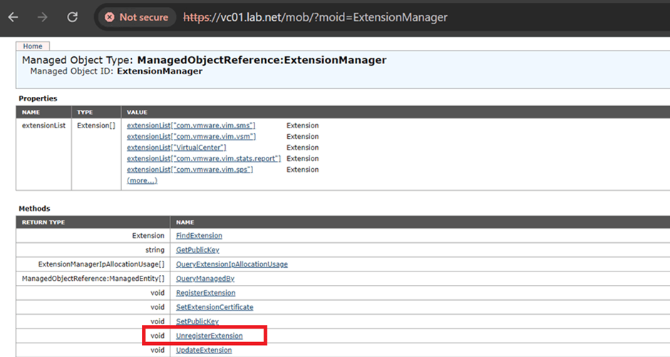 Let’s review again the Extension list: We can see “NSX manager association is no longer present”