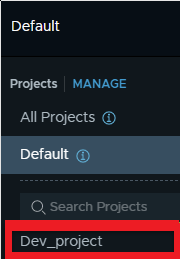 After clicking specific project, in this case Dev-Project we will be in Project menu & will not see any default space object but only project specific objects.
