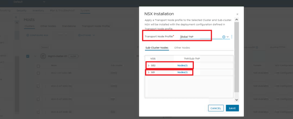 Once Sub TNP configuration is done with using different IP pools, its time to map the profile to cluster to install NSX over it.